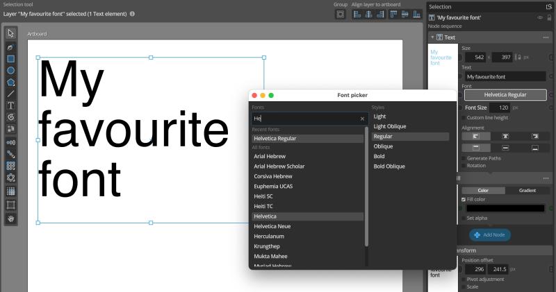 This update is another smaller update with improvements the undo/redo system with better grouping of actions and fixes to a number of undo-related issues. It also adds a new font picker panel with filtering and a list of recently used fonts to make selecting fonts easier.
